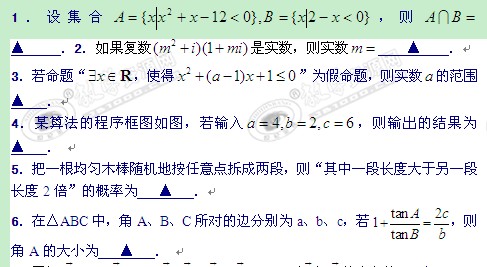 江苏省无锡市洛社中学2012届高三12月月考(数学)