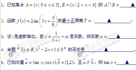 江苏省沭阳银河学校2012届高三上学期第二次考试(数学文)(无答案)
