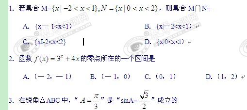 山东省青岛十九中2012届高三上学期模块检测(数学理)
