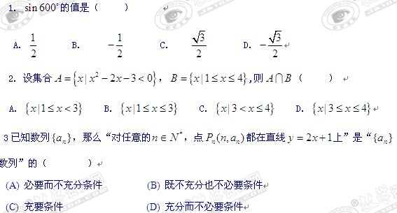 山东省临清三中2012届高三上学期学分认定测试(数学理)