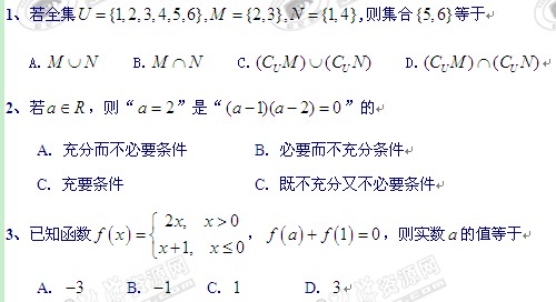 广东省江门二中2012届高三9月月考试卷(数学理)缺答案