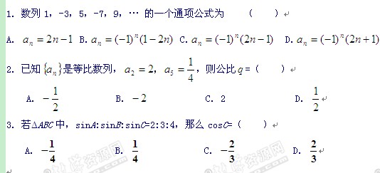 湖南省长沙市雷锋学校11-12学年高二上学期第一次月考(数学)(无答案)