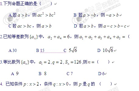 山东省临清三中11-12学年高二11月学分认定测试(数学理)