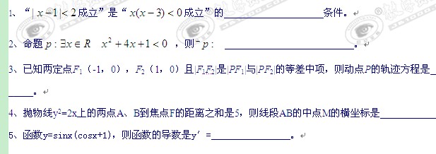 江苏省启东市汇龙中学11-12学年高二上学期第二次学情调查(数学)
