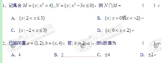 四川省德阳市2012届高三第一次诊断性考试(数学文)