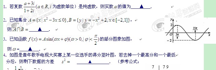 江苏省梁丰高级中学2012届高三上学期期末考全真模拟卷(数学)