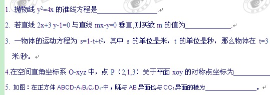 江苏省苏州市五市四区11-12学年高二上学期期末考试(数学)无答案