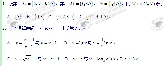 甘肃省白银市平川中恒学校11-12学年高一上学期期中考试(数学)