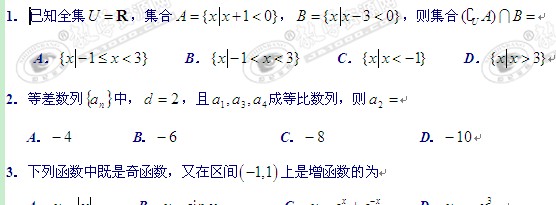 广东省佛山市普通高中2012届高三上学期教学质量检测(1)(数学文)