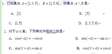 北京市密云县11-12学年高一上学期期末考试(数学)
