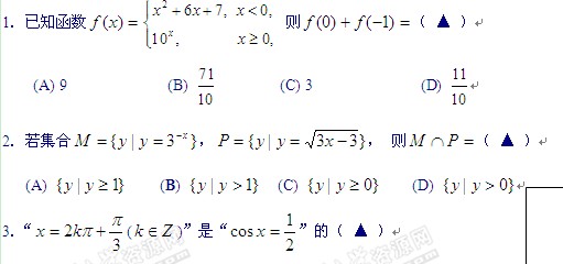 浙江省嘉兴五高2012届高三阶段检测(数学理)