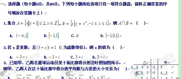 河北省衡水中学2012届高三下学期一调考试(数学理)缺答案