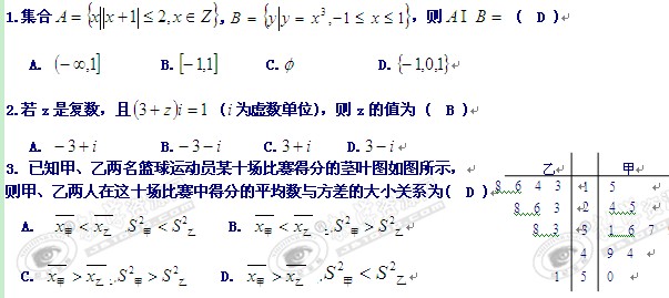 河北省衡水中学2012届高三下学期一调考试(数学理)解析版
