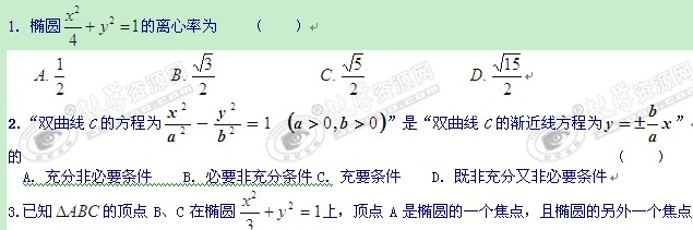 浙江省衡州市衡州二中11-12学年高二上学期期末考试试题(数学文)