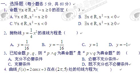 福建省福州八县(市)一中11-12学年高二上学期期末联考试题(数学文)