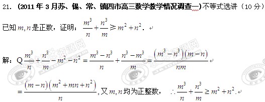 江苏省各地市2011年高考数学最新联考试题分类大汇编(18) 选修4-5:不等式选讲