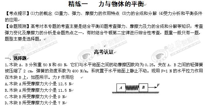 物理:2010届高考物理一轮复习精练一---力与物体的平衡