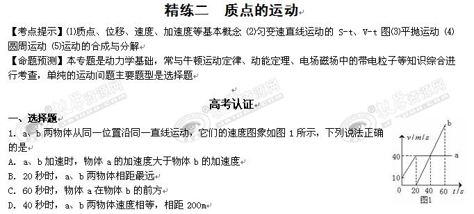 物理:2010届高考物理一轮复习精练二---质点的运动