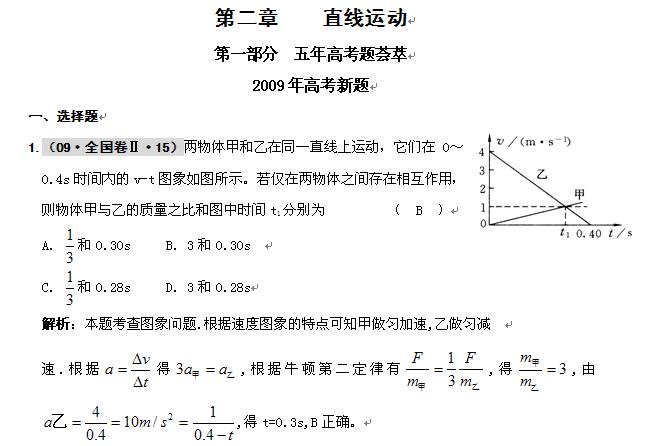 物理:2010届高考五年高考三年联考精品题库:第二章 直线运动