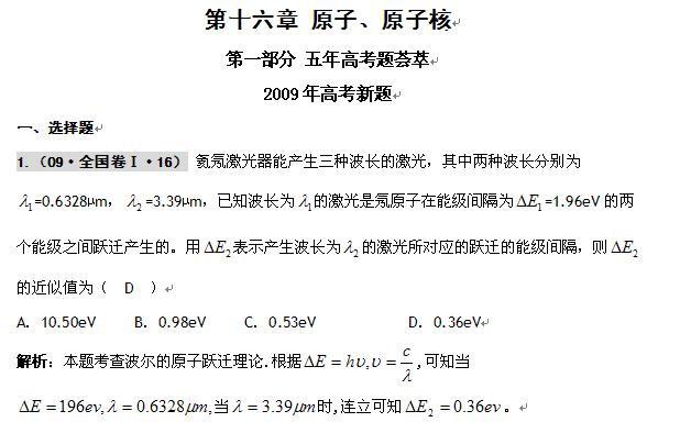 物理:2010高考复习(五年高考三年联考)精品题库:第十六章 原子、原子核