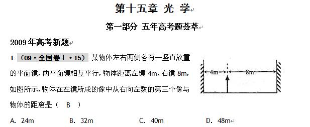 物理:2010届高考总复习(五年高考)(三年联考)精品题库:第十五章 光 学
