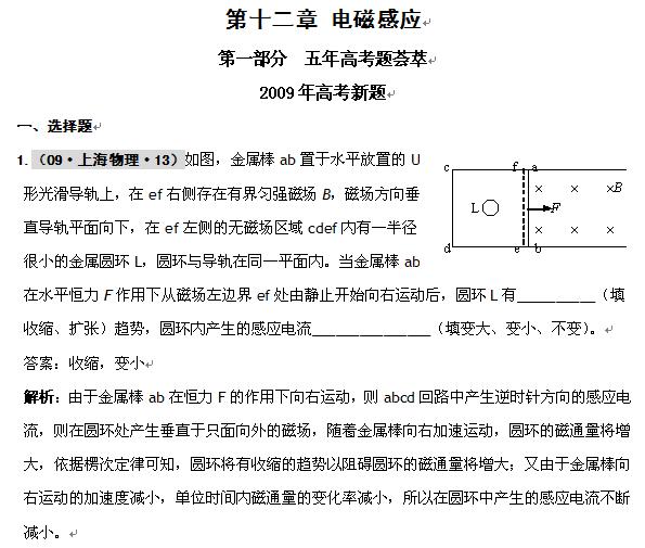 物理:2010届高考复习五三精品题库:第十二章 电磁感应
