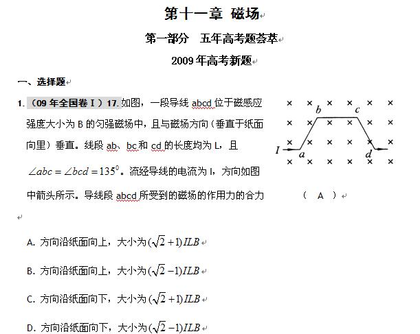 物理:2010届高考复习五三精品题库:第十一章 磁 场