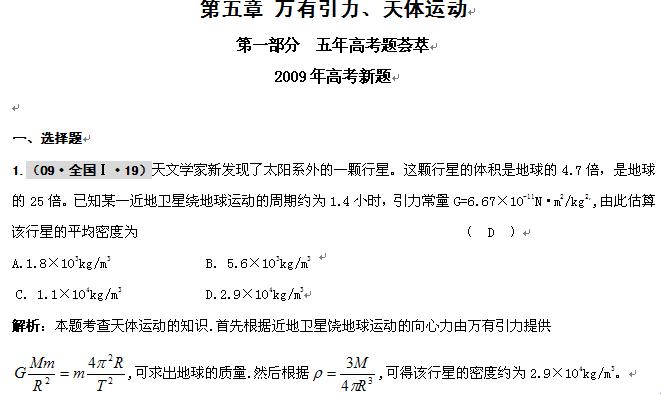 物理:2010届高考复习五三精品题库:第五章 万有引力、天体运动