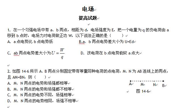 物理:电场提高试题(无答案)