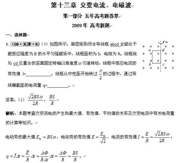 物理:2010届高考复习五三精品题库:第十三章 交变电流、电磁波