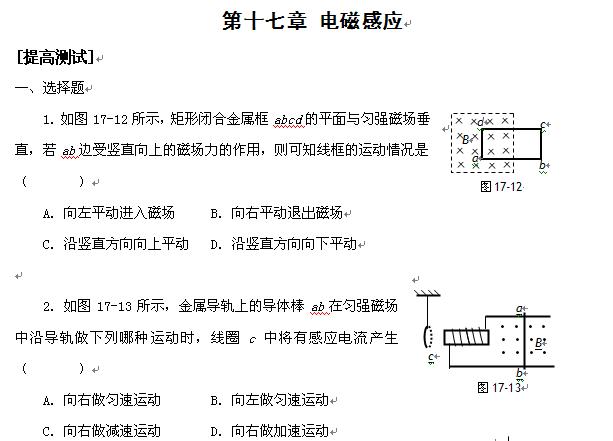物理:电磁感应提高测试
