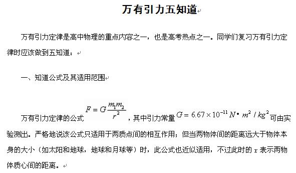 物理:万有引力五知道