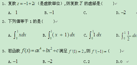 甘肃省武威第五中学11-12学年高二4月月考(期中)(数学)