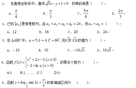 安徽省马鞍山市二中2011-2012高一下学期期末测试(数学)