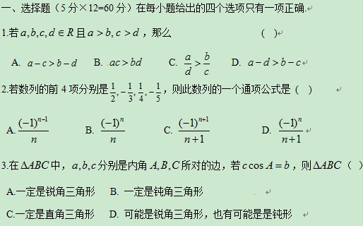 内蒙古巴彦淖尔市一中12-13学年高二9月月考(数学文)(无答案)