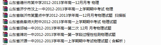 【打包】山东省12-13学年高一上学期考试物理试题(12.1-12.30)