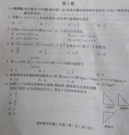 河北省保定市2013届高三第二次模拟考试(数学理)扫描版