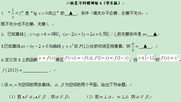 江苏省高邮市界首中学高三数学第二轮复习纠错训练6(学生版)