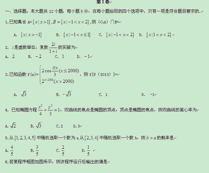 2013新课标高考压轴卷(一)(数学文)