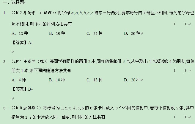 广西2013届高三理科(数学)精选(6年高考(大纲版)+2年模拟)分类汇编10:排列、组合