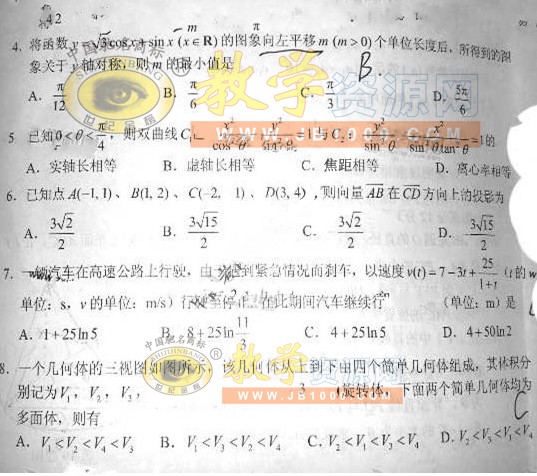 2013年普通高等学校招生全国统一考试湖北卷(数学理)扫描版缺答案(缺第1-3)