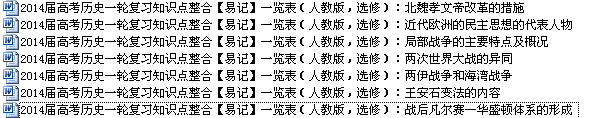 【打包7个】2014届高考历史一轮复习知识点整合【易记】一览表(人教版,选修)