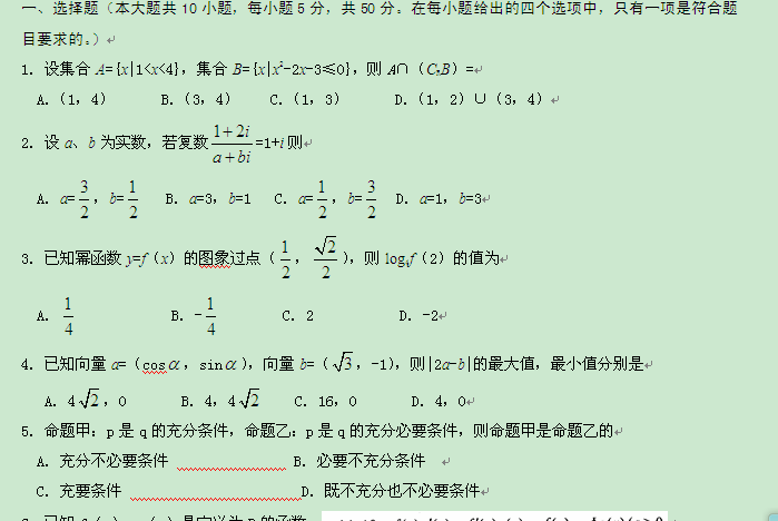 湖北省襄阳市2013-2014学年普通高中调研统一测试 高三(数学理)