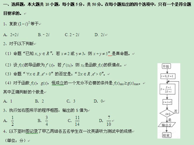 四川省眉山市2014届高三第一次诊断性考试试题(数学文)