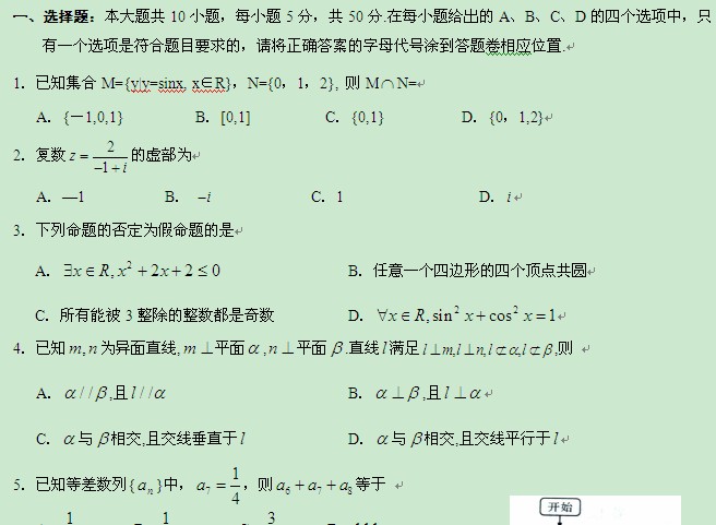 安徽省蚌埠市2014届高三第一次质量检测(数学文)