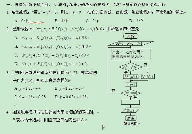 湖北省荆门市2013-2014学年度高二上学期期末质量检测 (数学理)