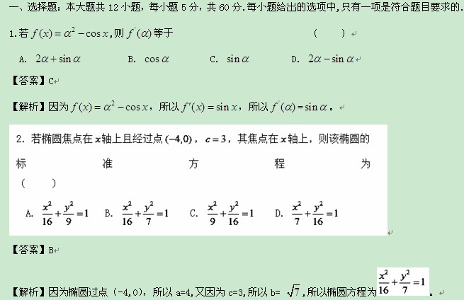 内蒙古包头市一机集团一中2013-2014学年高二上学期期末考试(数学文)(解析版)