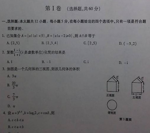 【2014甘肃省一诊】甘肃省2014届高三下学期一诊考试数学(文)试题扫描版