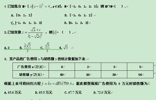 内蒙古包头一中2014年高三下学期第一次模拟考试(数学文)