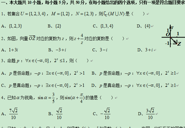 四川省泸州市2014届高三第三诊断考试(数学文)缺答案